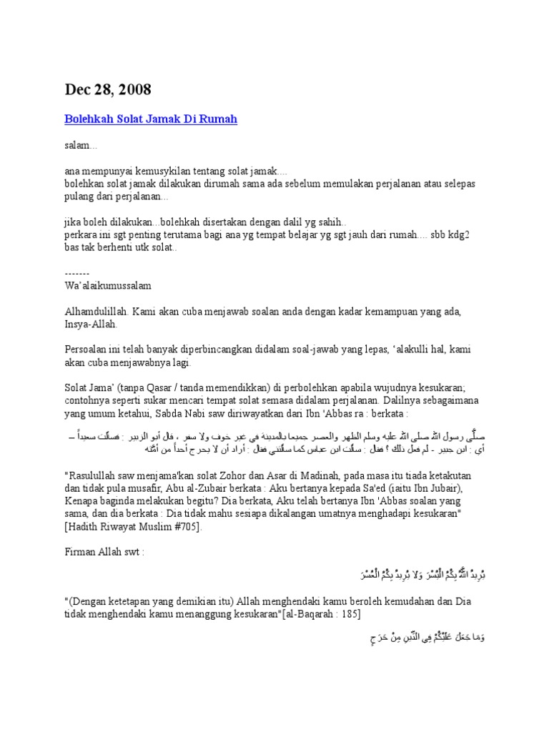 Bolehkah Solat Jamak Dirumah Kisah Zakat Malaysia